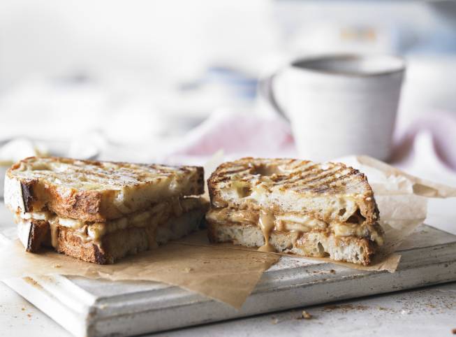 Eine Grillpfanne oder einen Sandwichmaker vorheizen.
