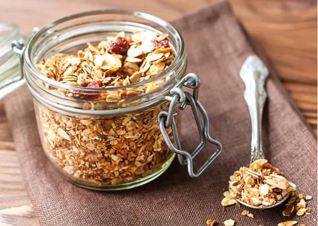 - Auf dem Blech vollständig abkühlen lassen, damit schöne Granola-Stücke entstehen.