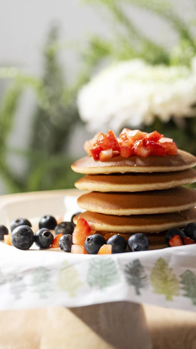 Die Pfannkuchen mit der restlichen Erdnussbutter-Soße, Ahornsirup und ggf. frischem Obst servieren. Falls nötig, die Soße vor dem Servieren erneut leicht erwärmen, damit sie schön flüssig ist.